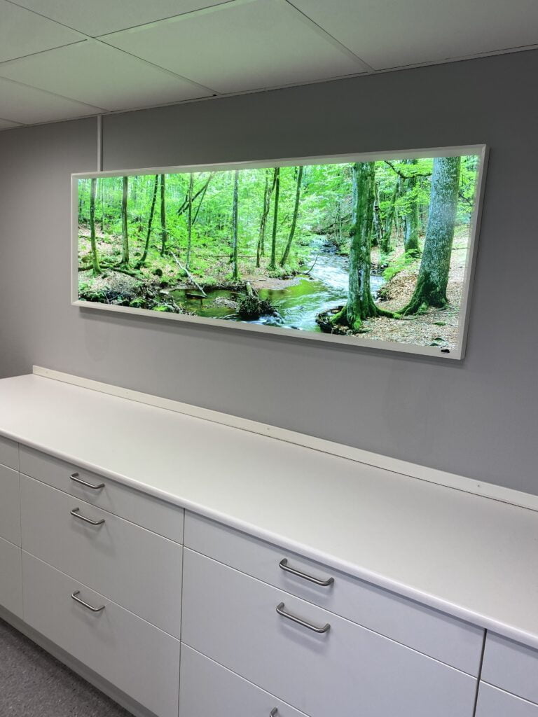 Installing the Lumlyx Care LED with a full 19,000 lumens and CRI 95, gives the treatment room enough light. At the same time, it also allows patients to be less anxious and relax while enjoying the view of a lush tree and a beautiful blue sky.