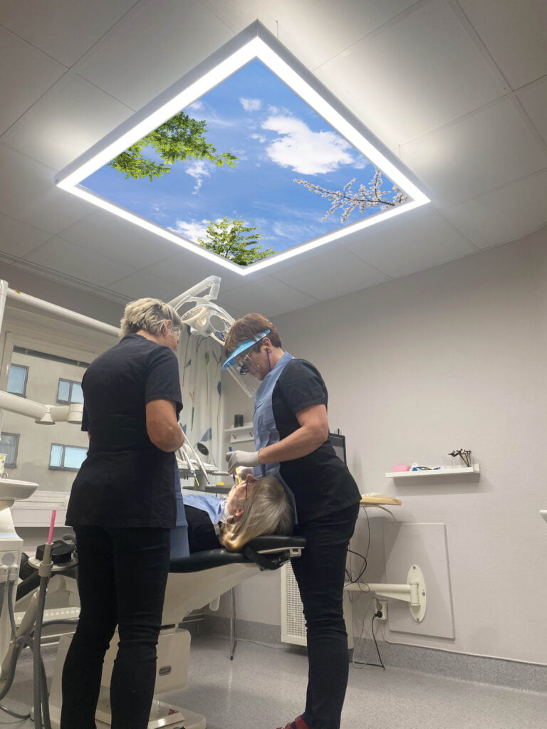 Dentists need a lot of light in their treatment room to be able to treat the patient well. Some patients also suffer from dental fear.
